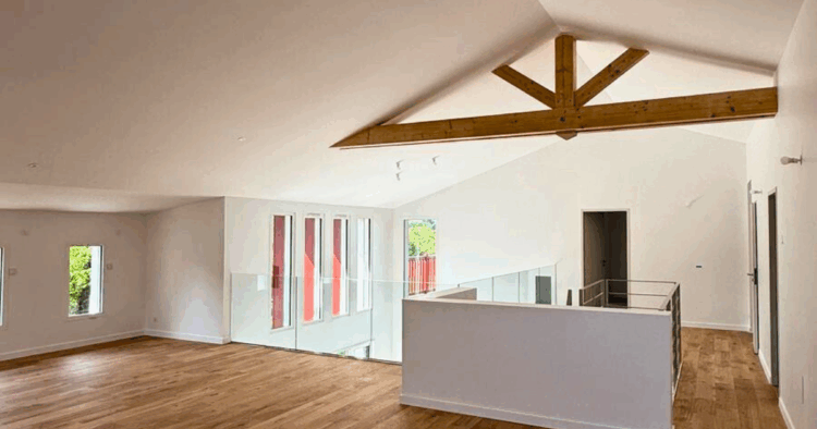 La villa d’architecte se situe à Arcangues, charmant village du Pays Basque, à seulement quelques kilomètres de Biarritz. Nichée entre collines verdoyantes et paysages pittoresques, elle offre un cadre de vie paisible tout en étant proche des plages et des commodités de la côte basque.