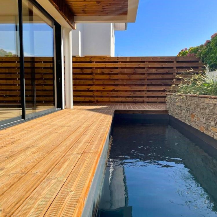 Une piscine vient agrémenter le tout et créer une zone de fraicheur et de détente.