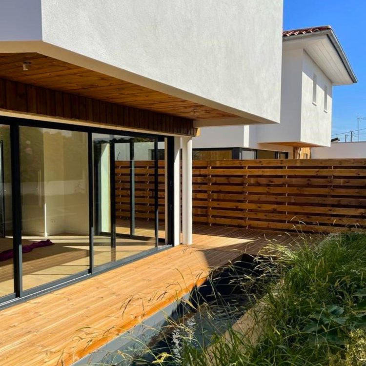 Ce projet a été pensé par l’architecte Fabrice Delettre, qui a pris en compte la spécificité d’un terrain enclavé en plein cœur d’Anglet afin de créer un ensemble intimiste dans lequel chaque propriétaire peut profiter de son espace  de vie.