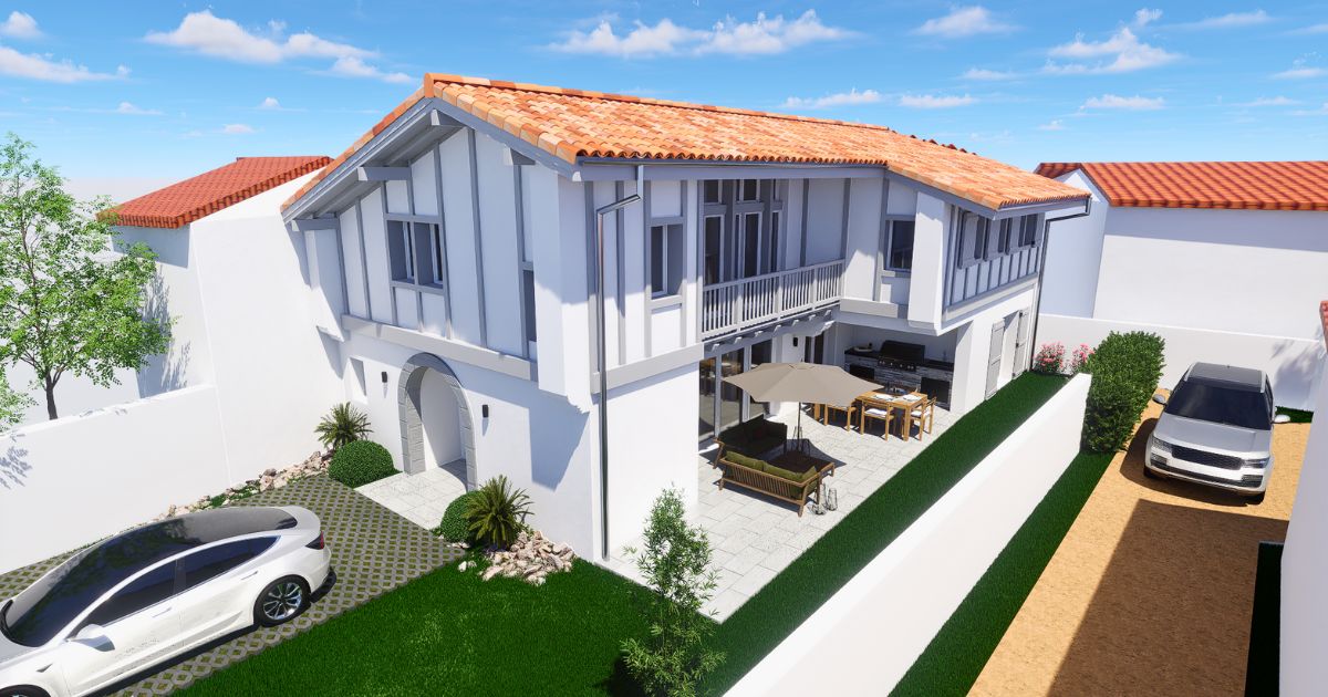 Dans un style néo-basque, la villa s’inscrit harmonieusement dans le secteur protégé des ABF. Développant 200 m² habitables et proposant 5 chambres, elle prend place sur un terrain de 378 m². Chaque étape du projet a été minutieusement étudiée, faisant de cette réalisation un ensemble unique, soigné et pensé dans les moindres détails.